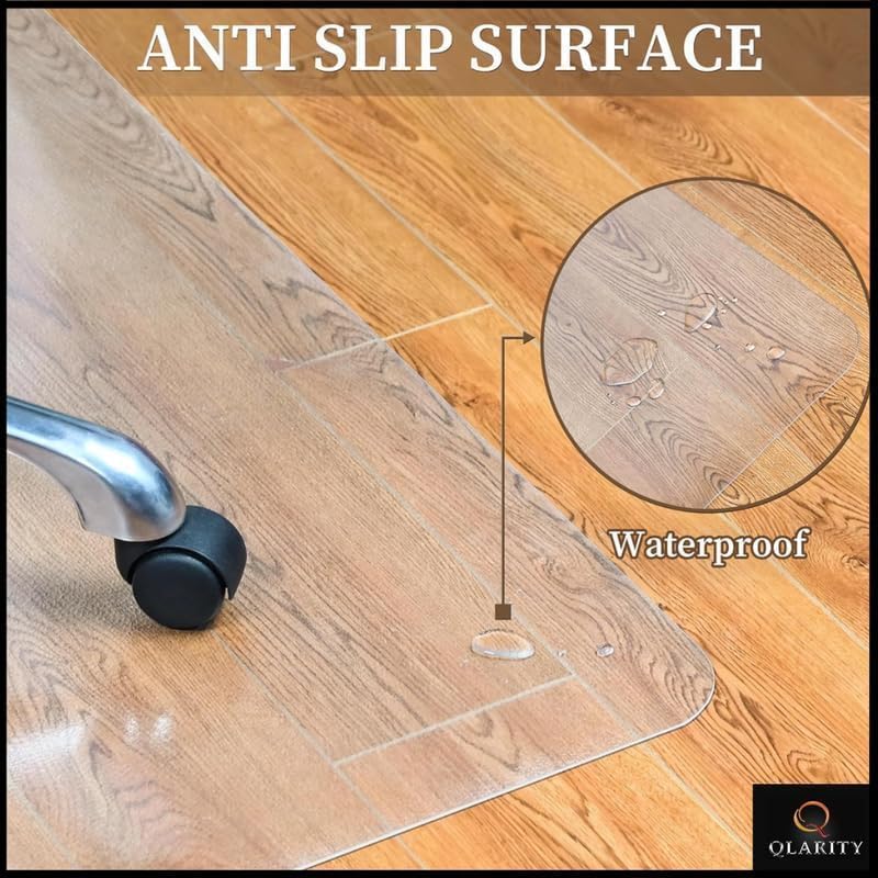 The floor protector office chair mat is crafted to allow easy chair movement, reducing friction and promoting smooth rolling. This enhances comfort and productivity by preventing strain on your legs and lower back, making it ideal for long hours of sitting. This floor protector chair mat prevents scratches, scuffs, and chair marks, safeguarding your hardwood, tile, laminate, and concrete floors from damage. It ensures your flooring stays in pristine condition, even with the constant use of office chairs.